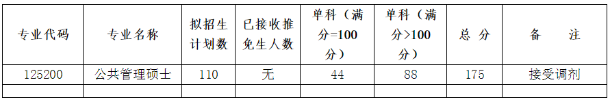 6.我單位公共管理碩士(MPA)專業(yè)尚有生源缺額,歡迎達(dá)到我單位復(fù)試分?jǐn)?shù)線,具有優(yōu)良本科教育背景和科研訓(xùn)練經(jīng)歷的優(yōu)秀考生調(diào)劑,具體調(diào)劑信息請(qǐng)關(guān)注本單位網(wǎng)站,并通過“全國(guó)碩士研究生招生調(diào)劑服務(wù)系統(tǒng)”進(jìn)行。