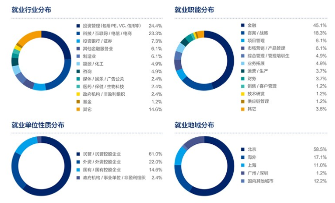 從北大光華《2019年全日制MBA畢業生情況》來看,僅9%的學生回原單位工作,可見尋求更好的職業發展是很多職場人士讀MBA的主要目的之一。