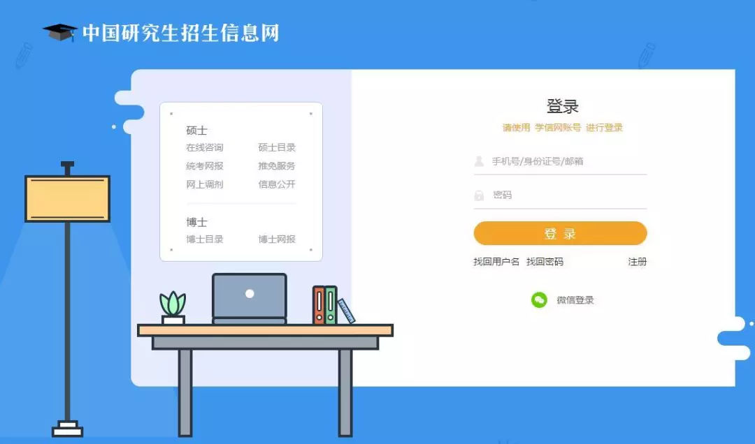 ▼1.打開研招網(wǎng)用已經(jīng)注冊號的學(xué)信網(wǎng)賬號登陸網(wǎng)報系統(tǒng),未注冊的學(xué)員及時注冊。