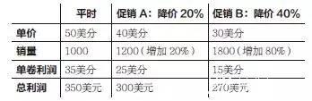 事實(shí)是,兩種促銷都會(huì)使收益降低,而方案B的負(fù)面影響大于方案A。具體情況見下表:
