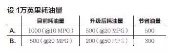 導(dǎo)讀:先來做一道應(yīng)用題。假如你負(fù)責(zé)管理公司車隊(duì),車隊(duì)有兩種車型,分別是一加侖汽油能跑10英里(簡寫為10 MPG,MPG是miles per gallon的縮寫,代表每加侖英里數(shù))的SUV和20 MPG的小轎車。兩種車數(shù)量相同,且都是每年跑1萬英里。你有足夠的資金,可以把其中一種換成更省油的車型,降低運(yùn)營成本,并實(shí)現(xiàn)可持續(xù)性目標(biāo)。從以下兩種方案中選擇一種。