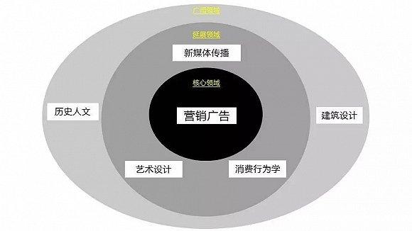 那么如何做到由專才向通才的轉變?Boy 的經驗是建立自己的知識關聯圖譜。拿我自己舉例,我的主業是廣告和營銷,圍繞著這個主業我可以拓展其他相關的知識領域,如下圖所示: