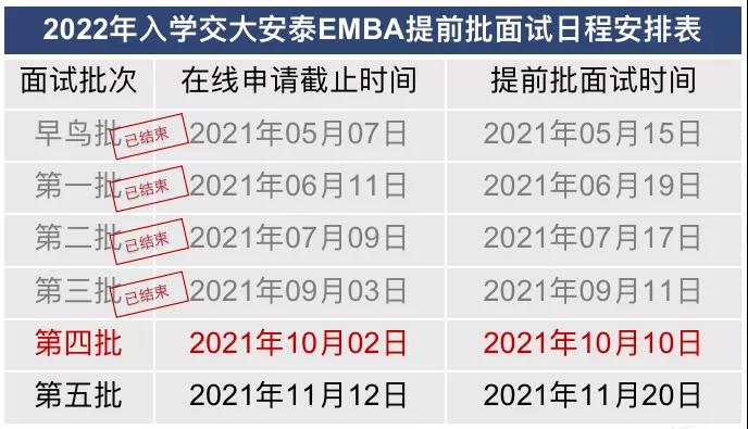 2022EMBA提前面試:【EMBA面試】上海交大安泰EMBA第四批面試提前至10月10日”,更多相關信息,請持續關注本網站!