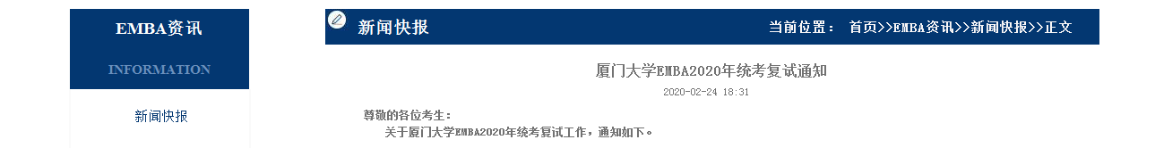 關于廈門大學EMBA2020年統考復試工作,通知如下。