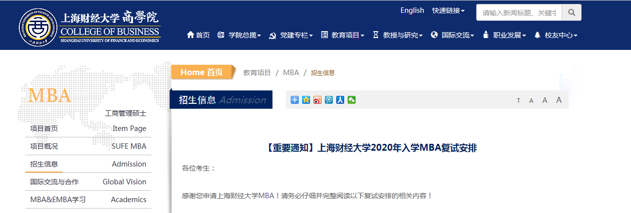 【重要通知】上海財經(jīng)大學2020年入學MBA復試安排