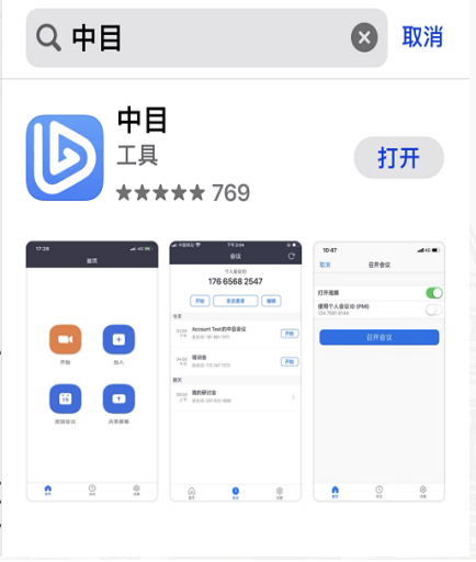 蘋果手機:打開AppStore,搜索“中目 ”,點擊“獲取”即可下載安裝。