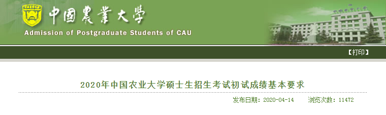 導(dǎo)讀:經(jīng)學(xué)校研究生招生工作領(lǐng)導(dǎo)小組審定,經(jīng)教育部和北京教育考試院審核備案,2020年中國(guó)農(nóng)業(yè)大學(xué)碩士研究生招生考試考生進(jìn)入復(fù)試的初試成績(jī)基本要求發(fā)布如下。