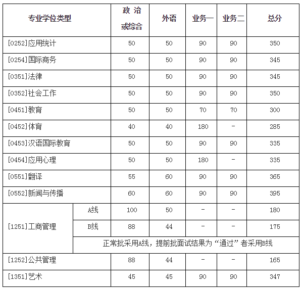 二、學校復試基本分數(shù)線(專業(yè)學位類)