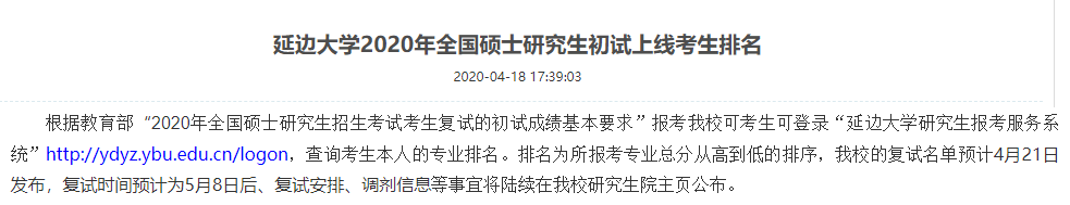 延邊大學2020年MBA復試基本分數線:175/44/88