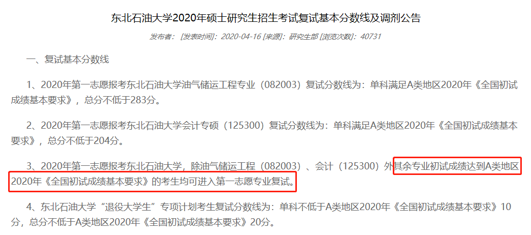 東北石油大學2020年MBA復試基本分數線:175/44/88
