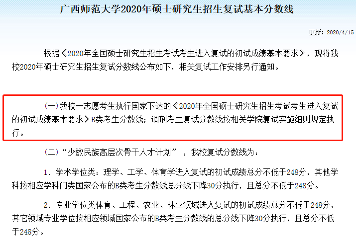 廣西師范大學2020年MBA復試基本分數線:165/39/78