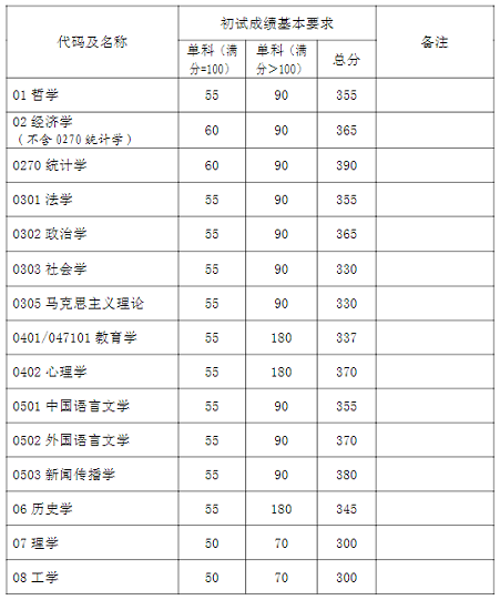 3.“退役大學生士兵計劃”:總分滿分等于500分的專業(yè),要求考生總分不低于所報考學科初試成績基本要求總分10分;總分滿分等于300分的專業(yè),要求考生總分不低于所報考學科初試成績基本要求總分5分。