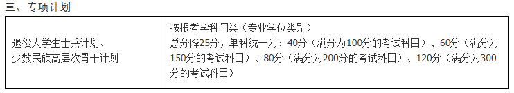 (2)高校學(xué)生應(yīng)征入伍服現(xiàn)役退役,達(dá)到報(bào)考條件后,3年內(nèi)參加全國(guó)碩士研究生招生考試的考生,初試總分加10分,同等條件下優(yōu)先錄取。納入“退役大學(xué)生士兵”專項(xiàng)計(jì)劃招錄的,不再享受退役大學(xué)生士兵初試加分政策。