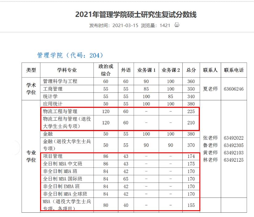 導讀:眾所周知,2021考研成績公布后,考研國家線、報考院校分數線是考生關注重點。2021考研國家線已于3月12日公布,34所自主劃線院校復試分數線也陸續公布。今天小編整理了“2021管理類聯考(MBA MPA MEM MPAcc MLIS MAud MTA)34所自主劃線院校分數線:中國科學技術大學2021考研復試分數線”的內容,各位考生了解一下~