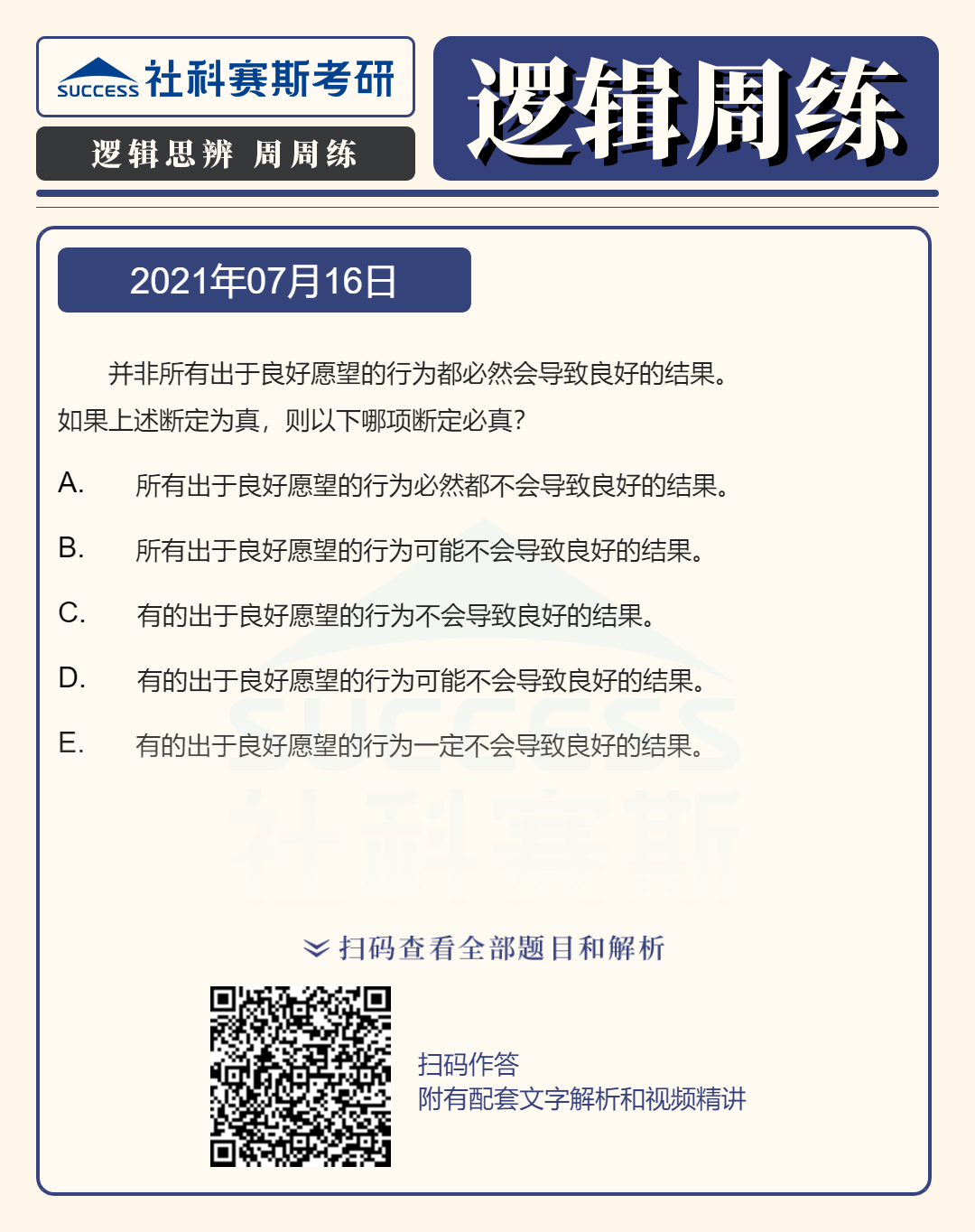 以上就是“2022MBA邏輯:2022MBA聯考邏輯習題及答案解析(7月16日)”的全部內容,更多邏輯精選習題,請持續關注社科賽斯MBA備考網!