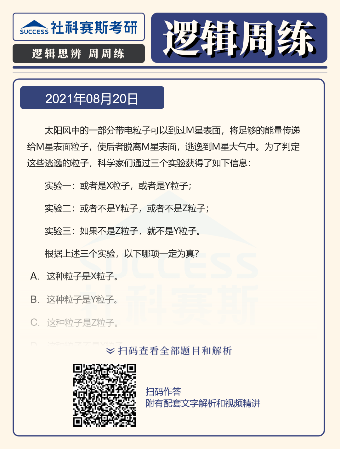 導(dǎo)讀:邏輯題型是管理類聯(lián)考考試中的必考題型,也是MBA聯(lián)考復(fù)習(xí)中的重要部分,社科賽斯MBA備考網(wǎng)小編整理了“2022MBA邏輯:2022MBA聯(lián)考邏輯習(xí)題及答案解析(8月20日)”的內(nèi)容,希望能對(duì)廣大考生有所幫助。