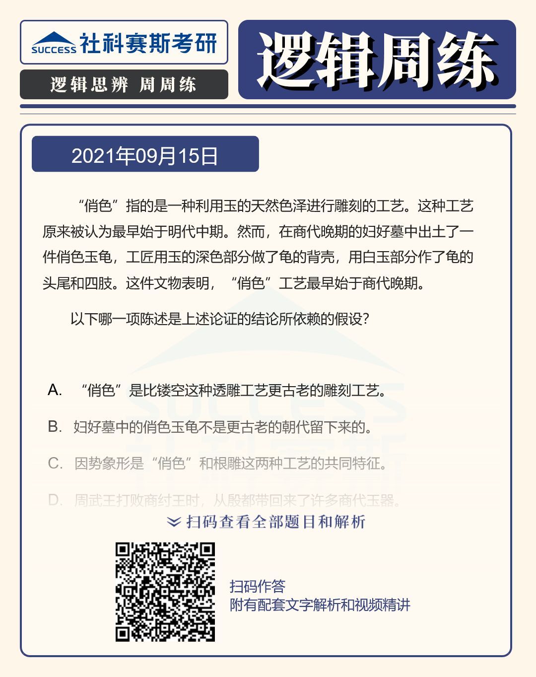 以上就是“2022MBA邏輯:2022MBA聯(lián)考邏輯習(xí)題及答案解析(9月15日)”的全部?jī)?nèi)容,更多邏輯精選習(xí)題,請(qǐng)持續(xù)關(guān)注社科賽斯MBA備考網(wǎng)!