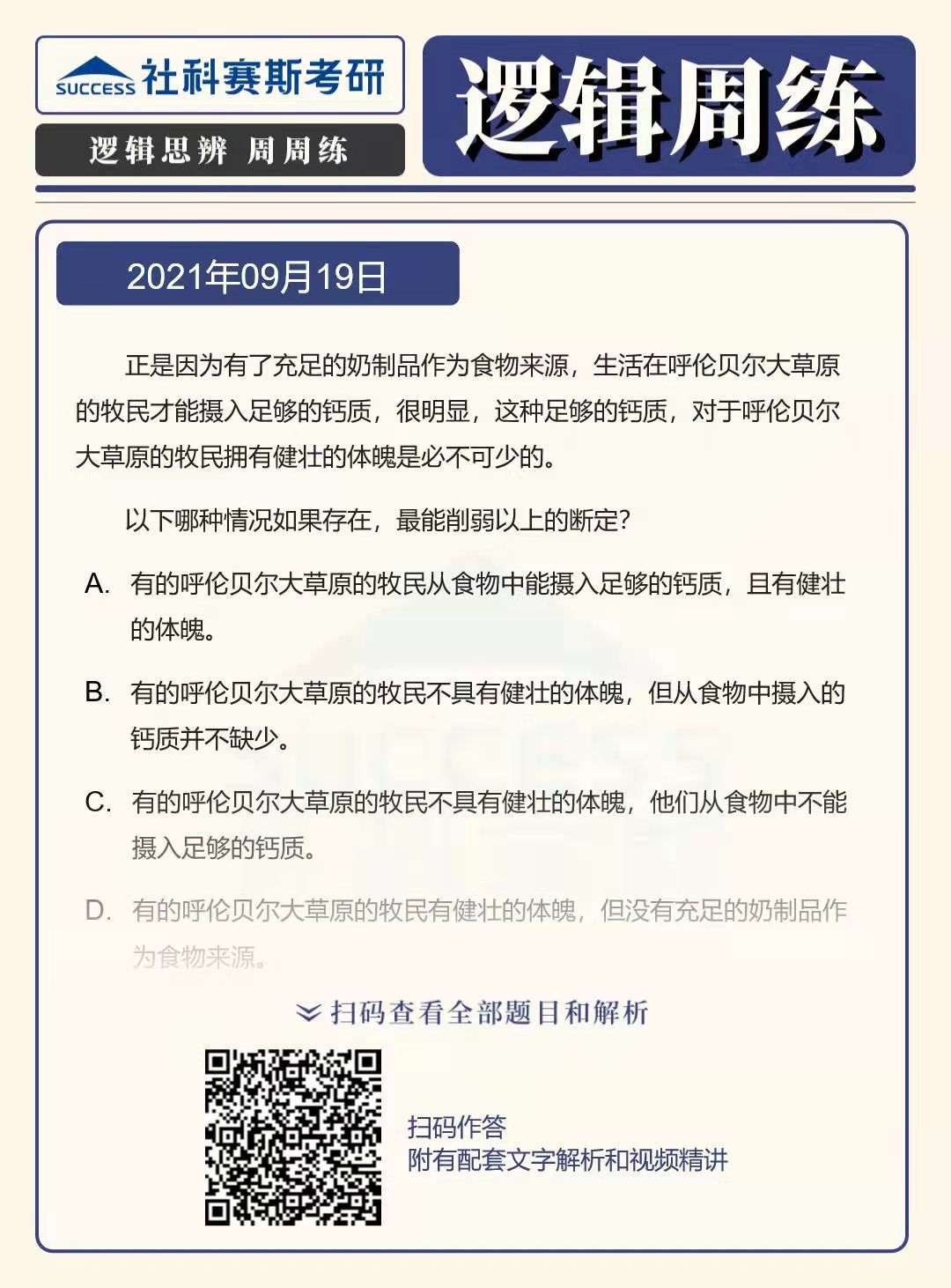 以上就是“2022MBA邏輯:2022MBA聯考邏輯習題及答案解析(9月19日)”的全部內容,更多邏輯精選習題,請持續關注社科賽斯MBA備考網!