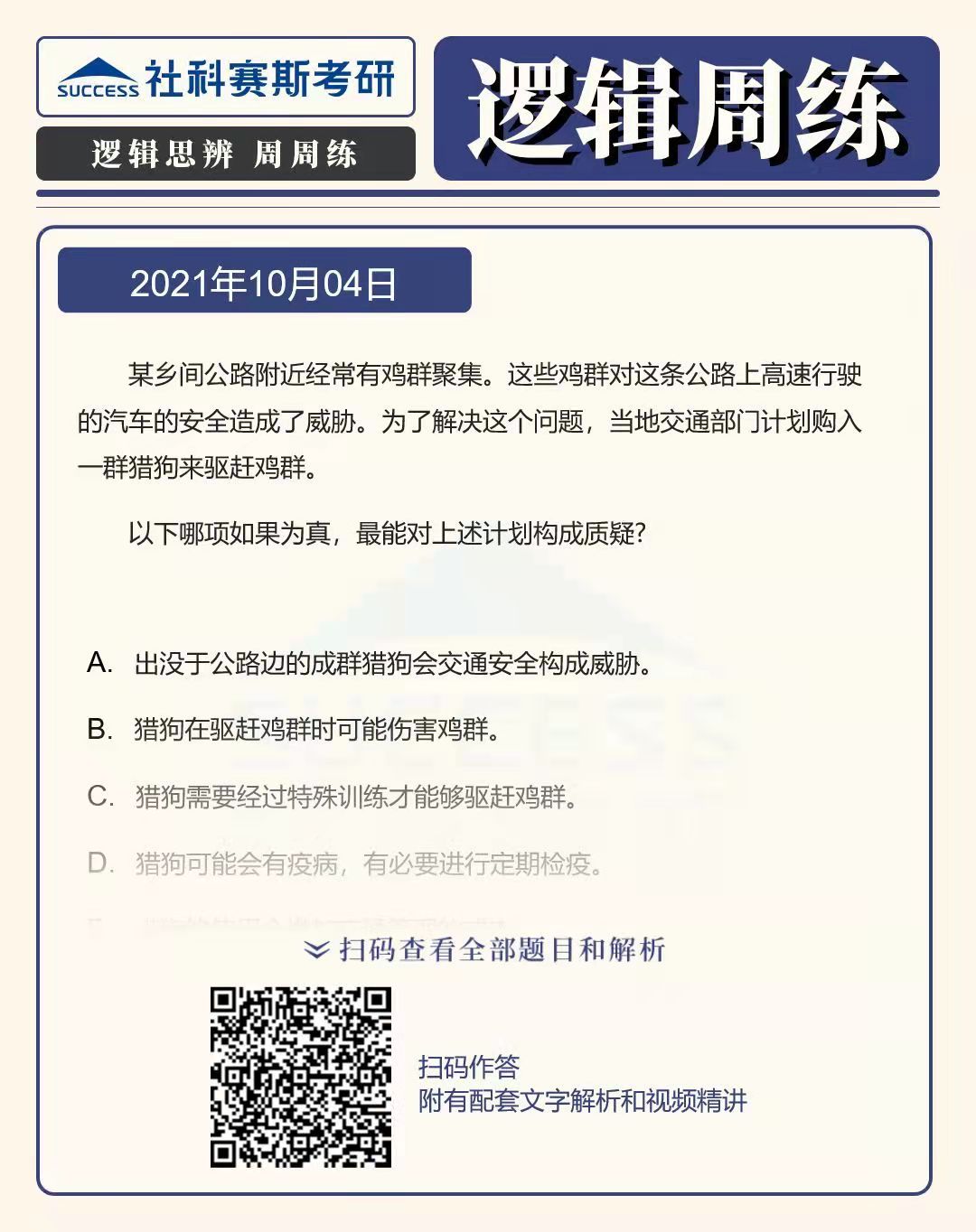 以上就是“2022MBA邏輯:2022MBA聯考邏輯習題及答案解析(10月4日)”的全部內容,更多邏輯精選習題,請持續關注社科賽斯MBA備考網!