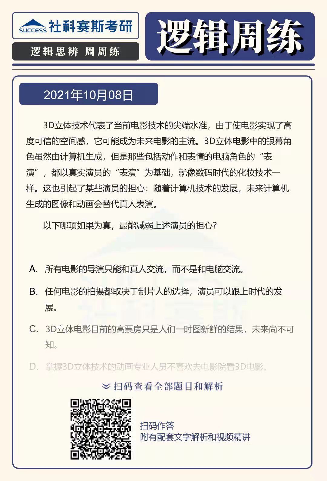以上就是“2022MBA邏輯:2022MBA聯考邏輯習題及答案解析(10月8日)”的全部內容,更多邏輯精選習題,請持續關注社科賽斯MBA備考網!