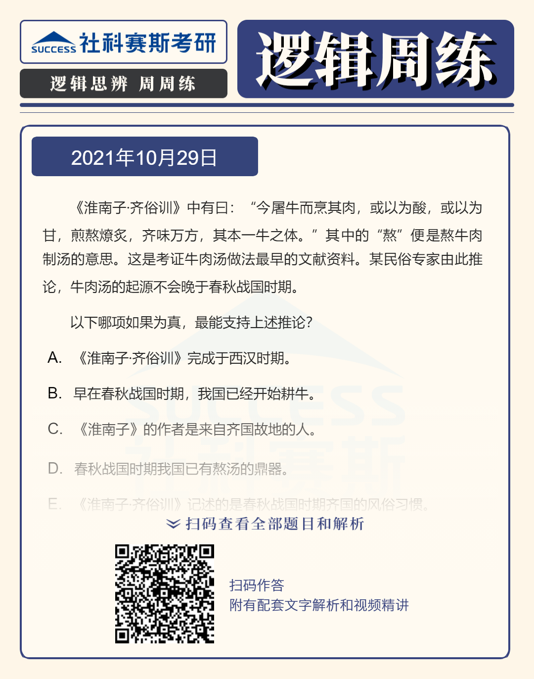 以上就是“2022MBA邏輯:2022MBA聯考邏輯習題及答案解析(10月29日)”的全部內容,更多邏輯精選習題,請持續關注社科賽斯MBA備考網!