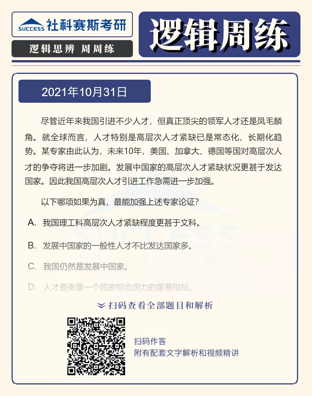 以上就是“2022MBA邏輯:2022MBA聯考邏輯習題及答案解析(10月31日)”的全部內容,更多邏輯精選習題,請持續關注社科賽斯MBA備考網!