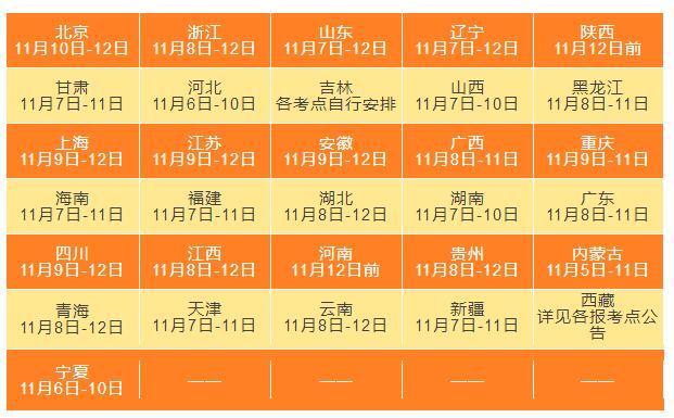 最后附上各省市現場確認時間匯總表,供大家參考~一定要去查看報考點的網報公告!