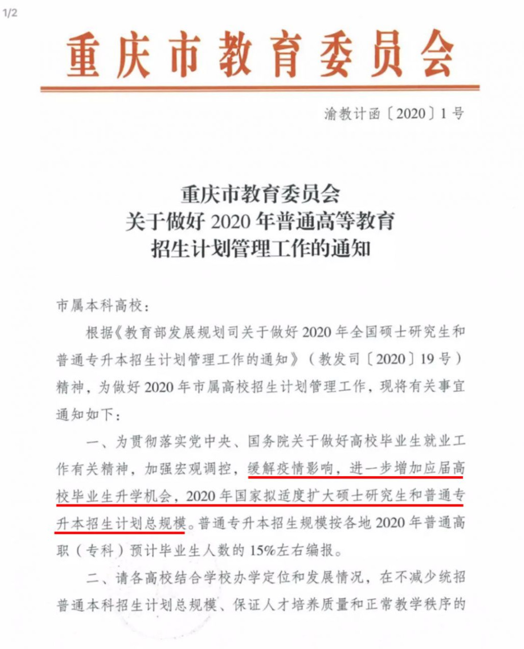 此前,2月22日,湖南省人力資源和社會(huì)保障廳曾發(fā)布《應(yīng)對(duì)新冠肺炎疫情做好高校畢業(yè)生就業(yè)創(chuàng)業(yè)工作十條措施》,第五條“積極向教育部爭取支持,擴(kuò)大研究生招生規(guī)模,2020年全省增加5%研究生招生計(jì)劃,將專升本錄取比例擴(kuò)大1倍以上。”