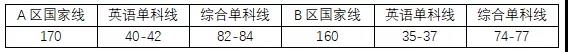 即A區(qū)國(guó)家線有較大概率還是停留在170,而在單科方面,英語(yǔ)單科線在40-42分,綜合單科線在82-84分波動(dòng)的概率最大。B區(qū)國(guó)家線在160,英語(yǔ)單科線在35-37,綜合在74-77。