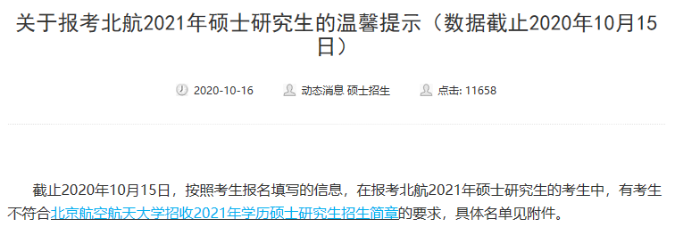 例如:北航近期發布通知有部分考生報名不符合該校招生簡章要求。