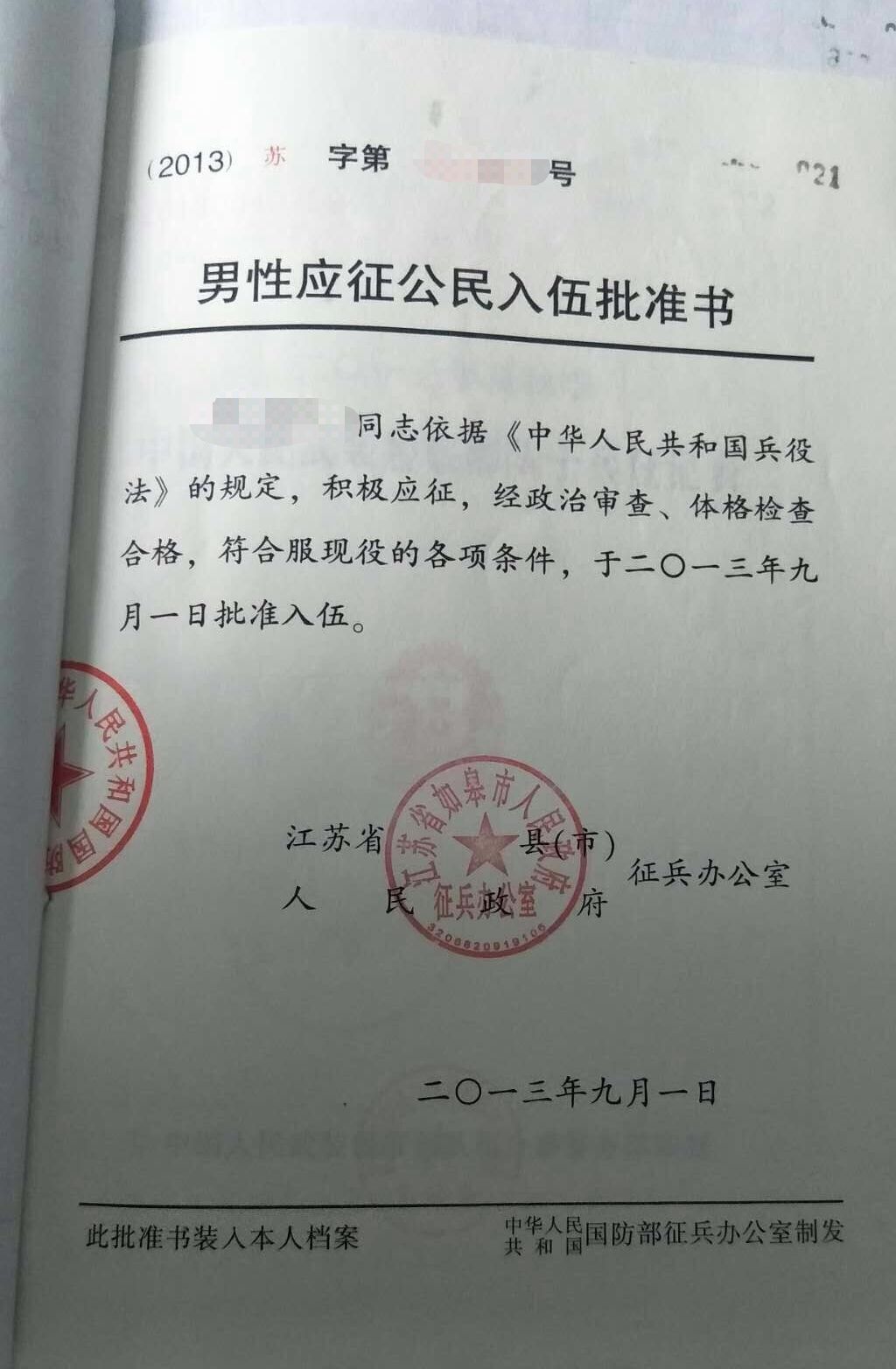 入伍批準書照片示例(報考退役大學生士兵專項計劃的考生提供)