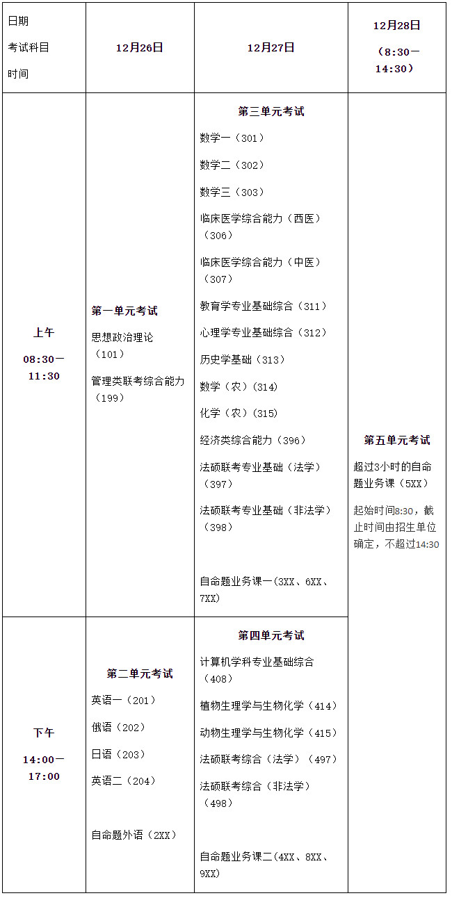 2021年全國(guó)碩士研究生招生考試將于2020年12月26日-27日舉行(考試時(shí)間超過(guò)3個(gè)小時(shí)的5XX科目在12月28日進(jìn)行),現(xiàn)將我校考點(diǎn)有關(guān)事項(xiàng)公告如下: