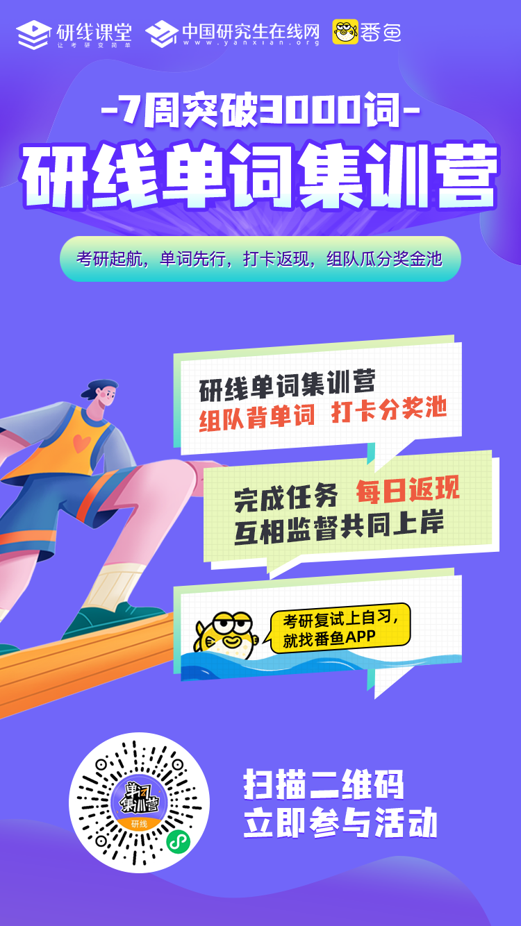 ▲研線網(wǎng)公眾號后臺回復(fù)【背單詞】添加研線小姐姐好友,即可進(jìn)入研線單詞集訓(xùn)營!