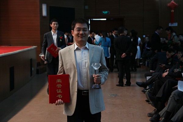 北京社科賽斯教育集團(tuán)常務(wù)校長(zhǎng)――李發(fā)進(jìn),手持獎(jiǎng)杯和榮譽(yù)證書,滿懷喜悅的站在攝像師前為公司贏得這樣的榮譽(yù)而驕傲