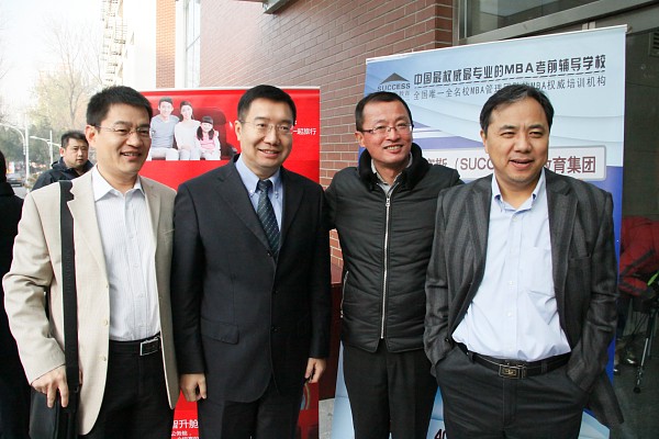 北京社科賽斯教育集團(tuán)甄誠、李發(fā)進(jìn)與中國MBA聯(lián)盟名譽(yù)主席王璞(左二)、農(nóng)大MBA中心主任付文閣(右一)合影
