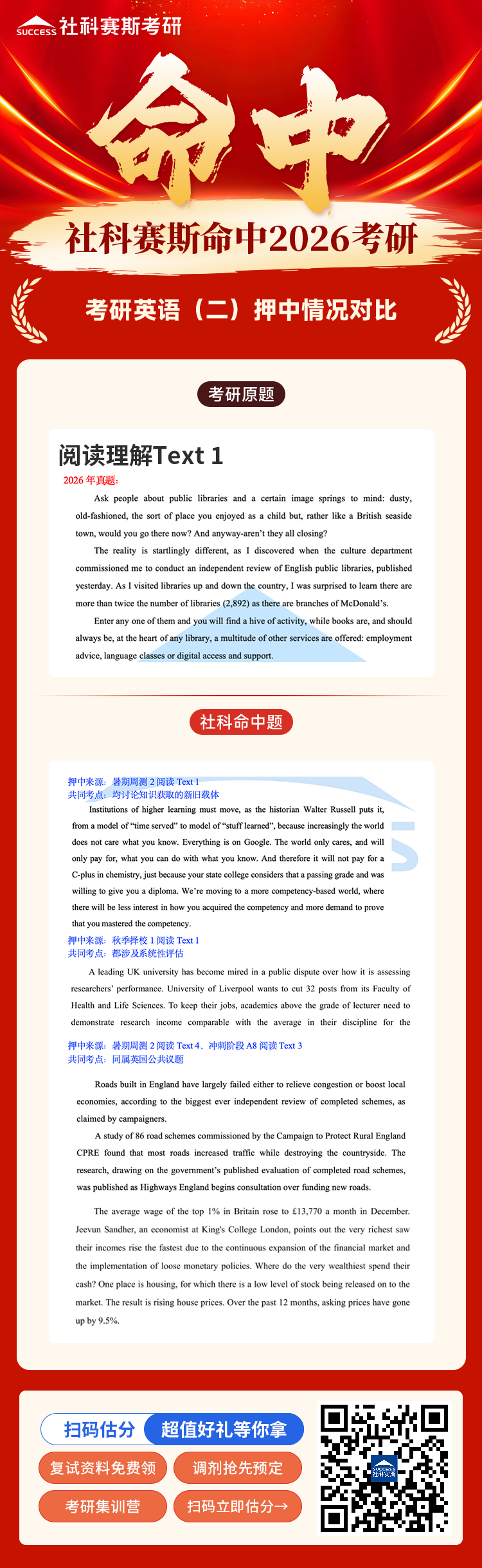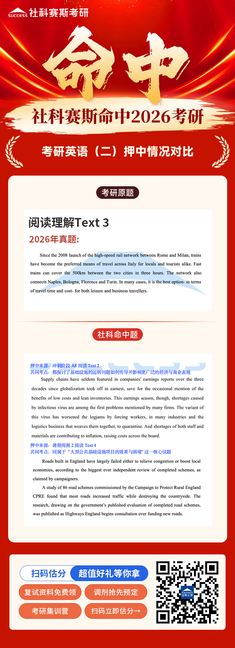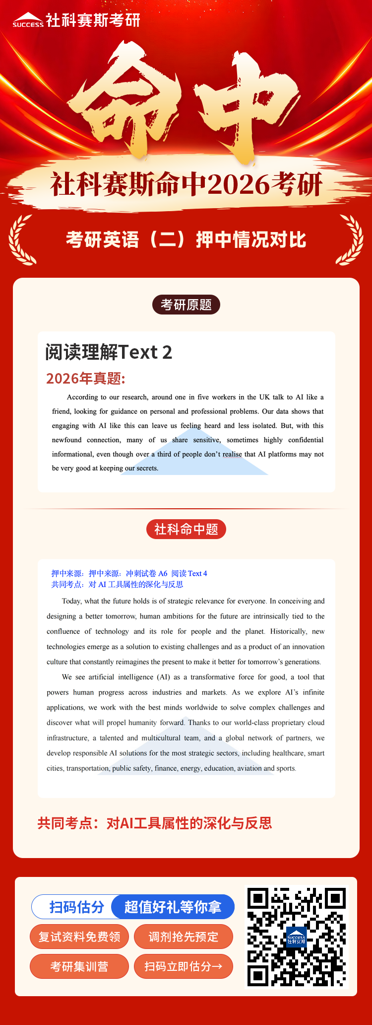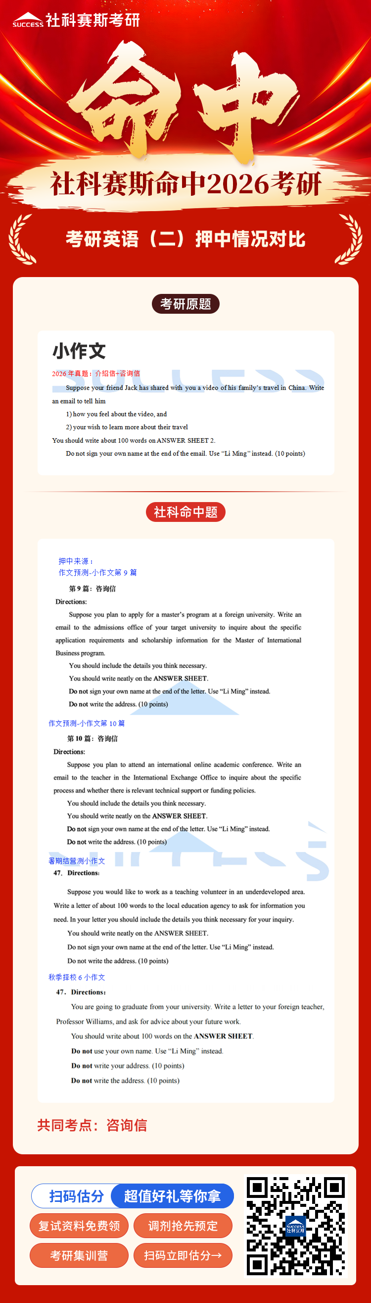 喜報:社科賽斯考研再次命中2026考研(英語二)大小作文!