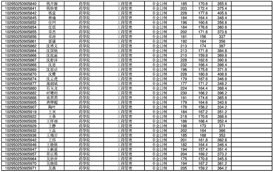 MBA-江南大學工商管理專業擬錄取名單公示: