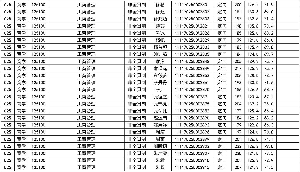 MBA-揚州大學工商管理專業擬錄取名單公示: