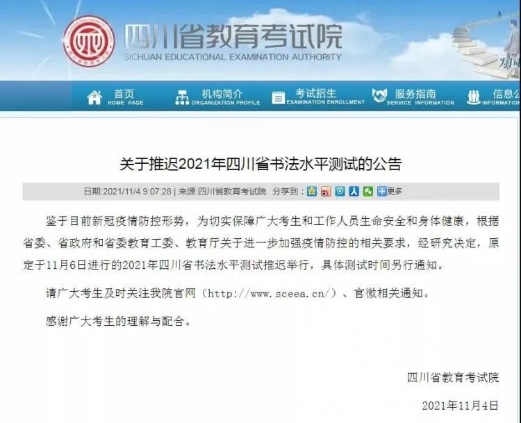 2021年四川省書(shū)法水平測(cè)試推遲舉行