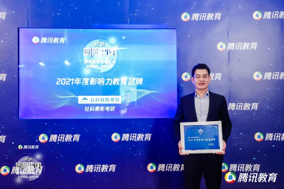 在最為期待的盛典頒獎環節,社科賽斯考研作為考研教培行業的知名品牌,通過業內專家學者、教育界權威人士及網絡投票的綜合評選,最終憑借超人氣的品牌影響力和知名度,在眾多教培機構中脫穎而出,榮獲騰訊教育“2021年度影響力教育品牌”獎。