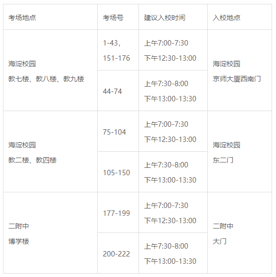 特別提示:海淀校園東二門(mén)、京師大廈西南門(mén)至最遠(yuǎn)考試樓步行時(shí)間約為10分鐘。