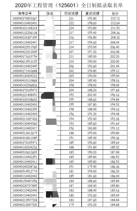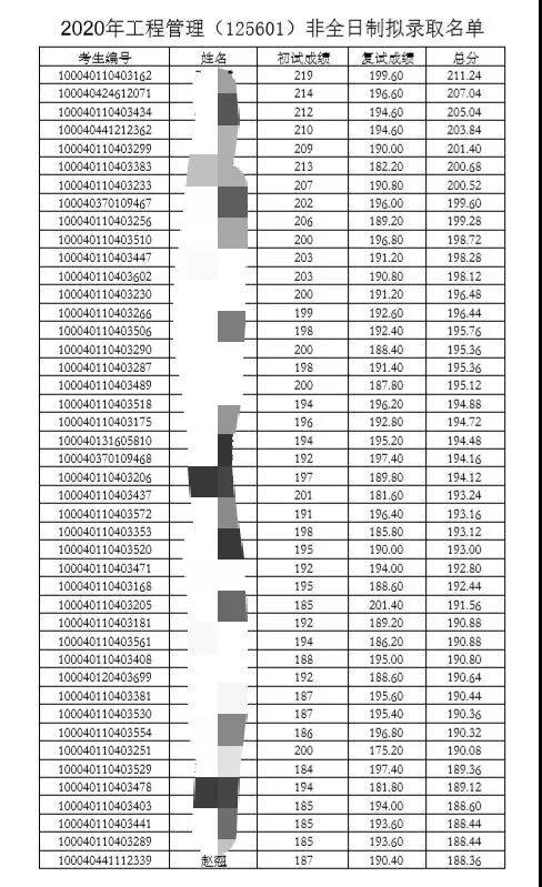 2020年非全日制錄取了151人, 初試成績(jī)最高分219分,最低分175分,平均分197分;