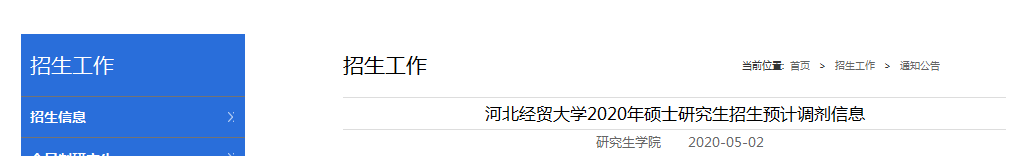 原標(biāo)題:河北經(jīng)貿(mào)大學(xué)2020年碩士研究生招生預(yù)計(jì)調(diào)劑信息