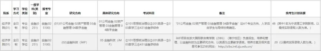 浙江大學2021年全日制金融專碩研究方向(01)01公司金融 02資產管理 03金融管理 04數字金融計劃招生48人研究方向(02)金融科技(iMF)計劃招生20人(不含推免)