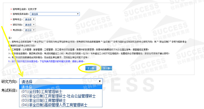 第三,“考生科目”一般為(199)管理類聯(lián)考綜合能力|(204)英語二|,若有小語種選項(xiàng),請自行選擇。