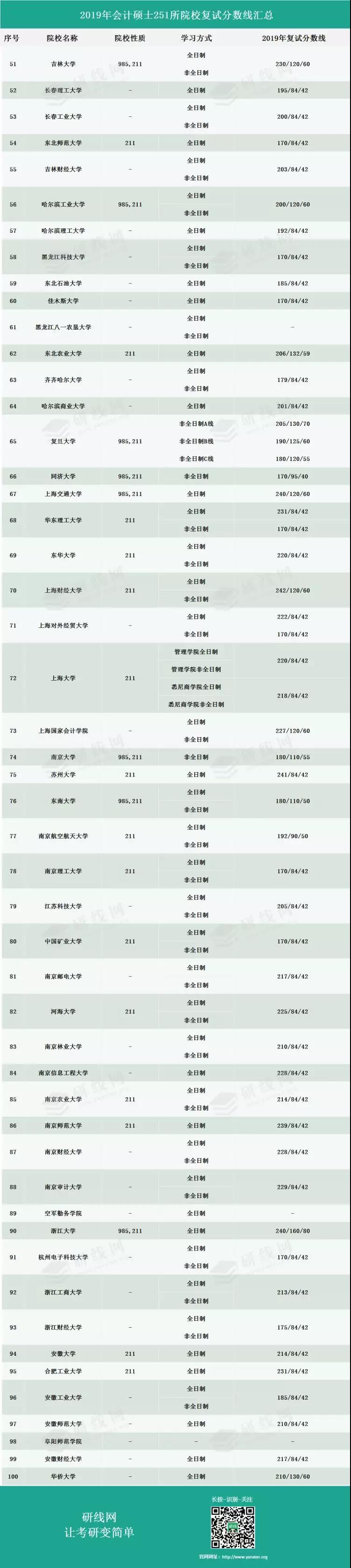 導(dǎo)讀:MBA備考網(wǎng)今天為大家整理了“2019年會計專碩(MPAcc)251所院校復(fù)試分?jǐn)?shù)線匯總”,希望能幫助到各位報考會計專碩的小伙伴!