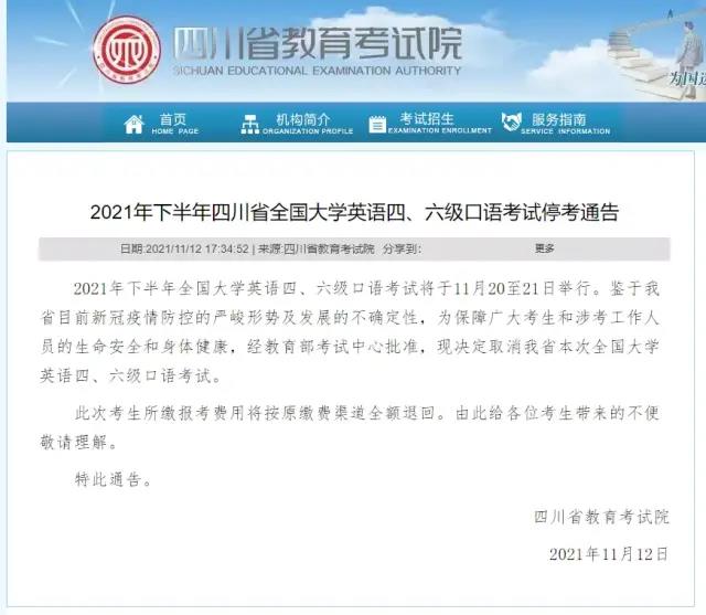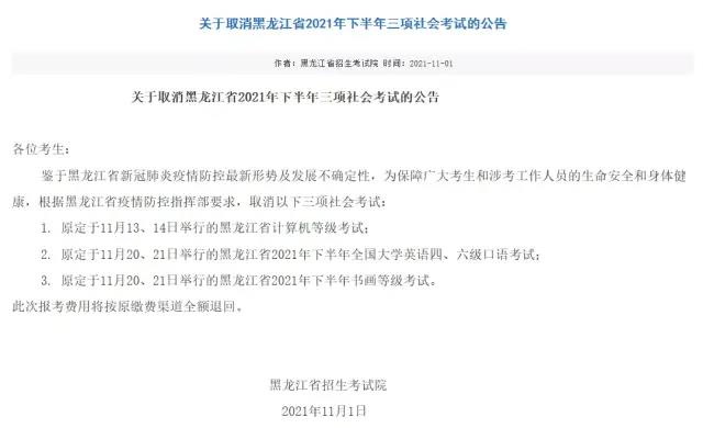 且官方聲明,此次考試的報考費用將按照原繳費渠道全額退回。