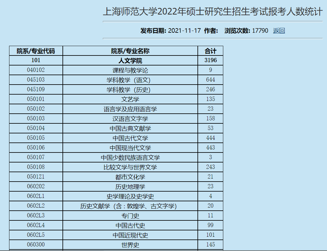 最近幾天大家對于22考研 報考人數非常關注! 網傳今年考研人數462萬 比去年增加85萬?? 不過目前各官網渠道并沒有公布22考研最終的報考人數,這個數據的真實性有待考究! 看到數據不要慌,不管最終人數是多少,它也只是分母,研寶子們注意,你們要做的可是分子哦!不拖上岸人數的后腿才是正道 目前,43所考研學校公布了22考研報考人數。 最近14所公布人數的院校數據 01 中國科學技術大學 據統計,2022年共有近1.7萬名考生報考中國科學技術大學研究生。 02 杭州師范大學 2022年一志愿報考杭州師范大學碩士研究生共計14025人,其中全日制13129人,非全日制896人。 03 陜西中醫藥大學 10月25日22時,2022年全國碩士研究生招生考試網上報名正式結束。經過近一個月的網上預報名和正式報名,最終報考陜西中醫藥大學的考生人數為4881人,較去年增加322人,增幅7.06%。 04 湖南工商大學 湖南工商大學一志愿報考人數較去年有大幅度的增加,增幅達72.2%,報考人數創歷史新高。 05 青島理工大學 據統計,2022年全國共有5340名考生報名青島理工大學碩士研究生,較2021年增加1835人,增幅52.6%。 06 安徽醫科大學 據統計,2022年碩士招生共有7500多名考生報考安徽醫科大學,比去年增加1400多人。 07 重慶理工大學 2022年重慶理工大學一志愿考生7700余名,同比增幅近50%,涉及全國600多個報考點。 08 北京林業大學 北京林業大學碩士研究生報考人數再創歷史新高,截止10月31日網報人數達9719人,比去年增加11.2%。 09 哈爾濱師范大學 2022年報考哈爾濱師范大學的考生總數達11105人,較去年增加了1874人,增幅20%,報考人數首次突破萬人,創我校一志愿報名人數歷史新高。 10 廣東財經大學 廣東財經大學2022年一志愿報考我校的考生共9462人,較去年增長32.9%。 11 南開大學 今年全國共有18154人正式確認報考南開大學。今年,報考學術學位碩士專業考生共計7854人,報考人數排名前五位的專業分別是應用經濟學、馬克思主義理論、中國語言文學、政治學、外國語言文學;報考專業學位碩士專業考生共計10300人,其中全日制專業學位6177人,非全日制專業學位4123人,報考人數排名前五位的專業分別是工商管理、公共管理、會計、金融、應用心理。 12 安慶師范大學 安慶師范大學2022年研究生一志愿報名人數同比增長50%。生源地擴大到全國27個省、自治區和直轄市的428個院校,省屬高水平大學本科生源報考占比進一步增加,其中本校應屆本科生報考人數同比增加了50%。 13 中國農業大學 中國農業大學2022中國農業大學碩士研究生報考人數達1.3萬人,其中全日制10768人,比去年增長了38%。 14 上海師范大學