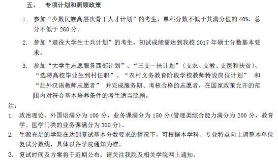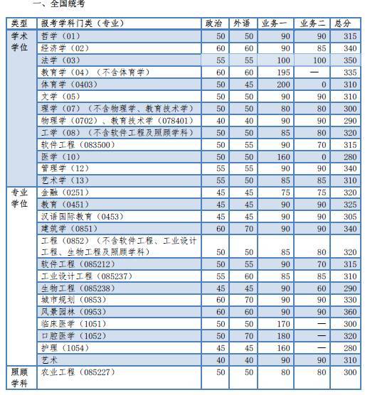 2017年碩士研究生入學考試復試分數基本要求如下:
