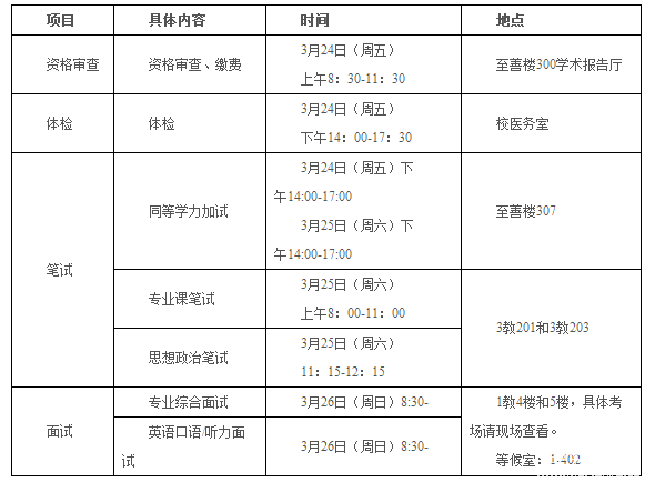 ⑥同等學(xué)力考生除須參加上述復(fù)試內(nèi)容外,還須參加2門該專業(yè)本科階段主干課程的加試(筆試,成績(jī)不計(jì)入復(fù)試總成績(jī))。加試科目每科試卷滿分為100分,考試時(shí)間為3小時(shí)。
